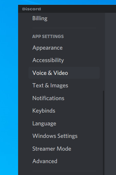 - Click the Vocalisation & Video tab nether App Settings on the left-hand pane of the Discord Settings window.