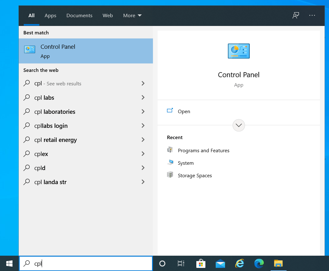 - Striking the Windows key and type "cpl". Hit Enter to launch Control Panel.