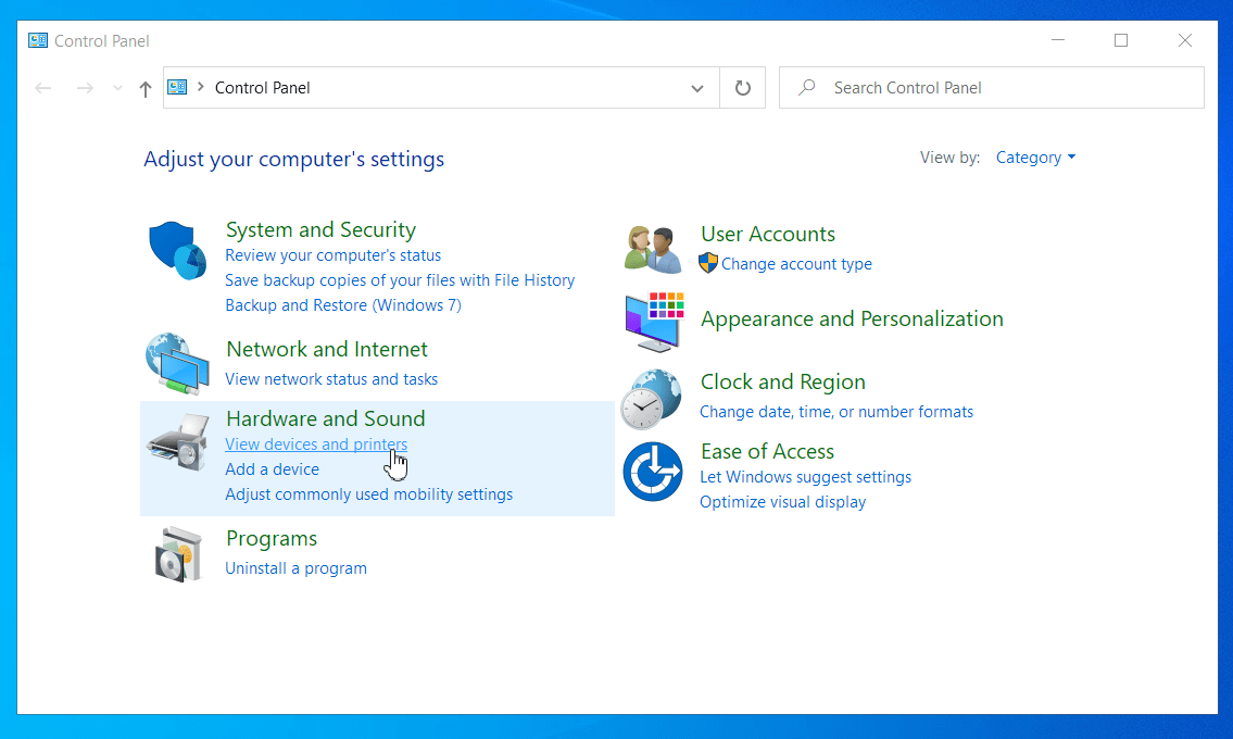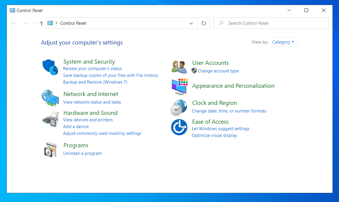 - Set up the view way in Control Panel to Category and select the "Uninstall a program" link.