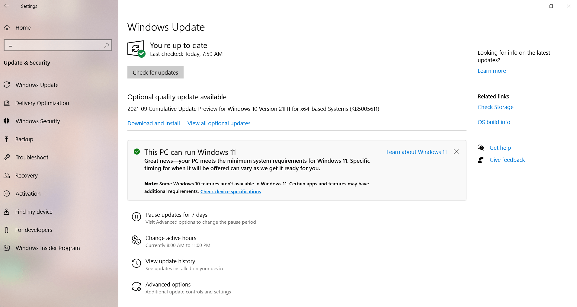 - Click "Check for updates" and Windows will automatically download the latest updates.