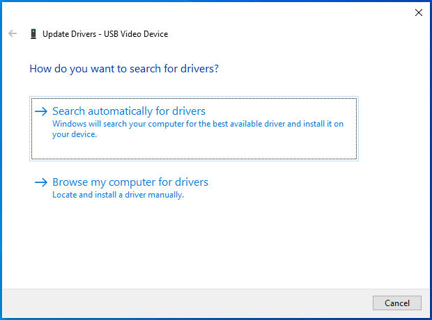 If the camera nonetheless isn't working in Discord, you tin can endeavor updating information technology and see if that helps. If you have an net connection, updating the webcam driver on Windows is like shooting fish in a barrel meat.