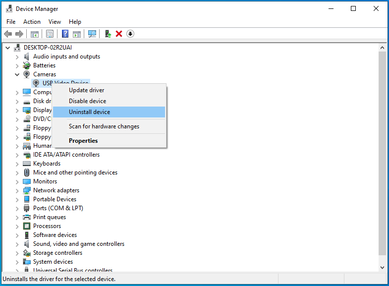- Right-click the photographic camera yous want to disable and select Disable Device.